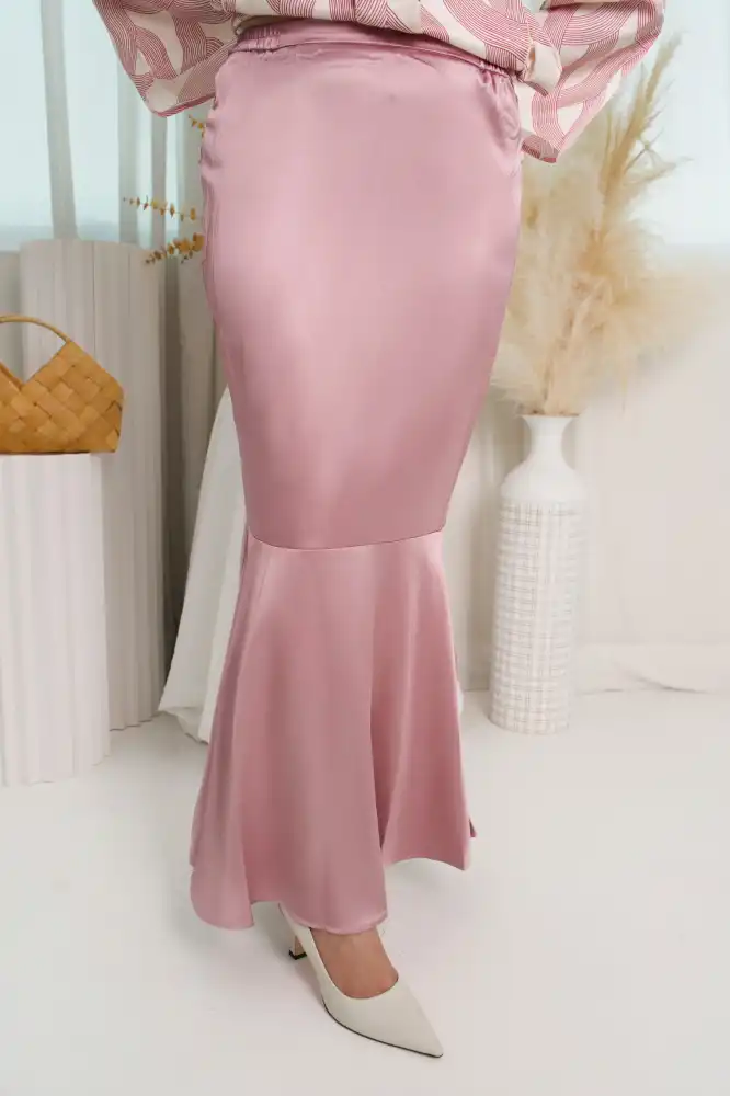 This skirt features a mermaid silhouette that fits confortably around the waist and hips, the gently flares out at the hem - creating a slimmimg and elongating effect on the body. The flare starts lower for graceful , modest flow instead of tight curve.