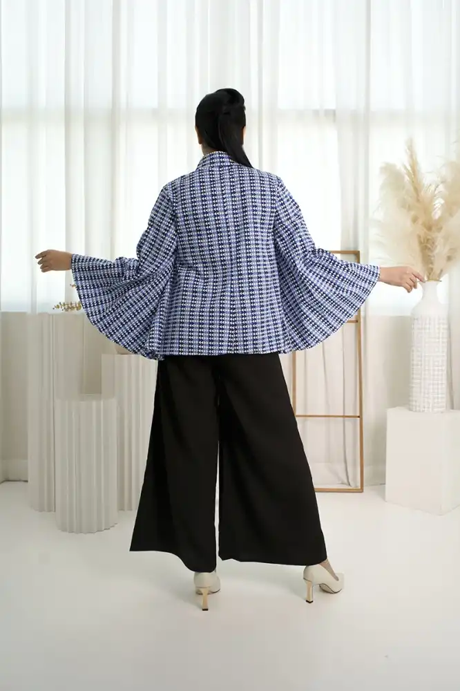 Anggun Modest Blouse - Kimono Top Blue & OOTD black pant