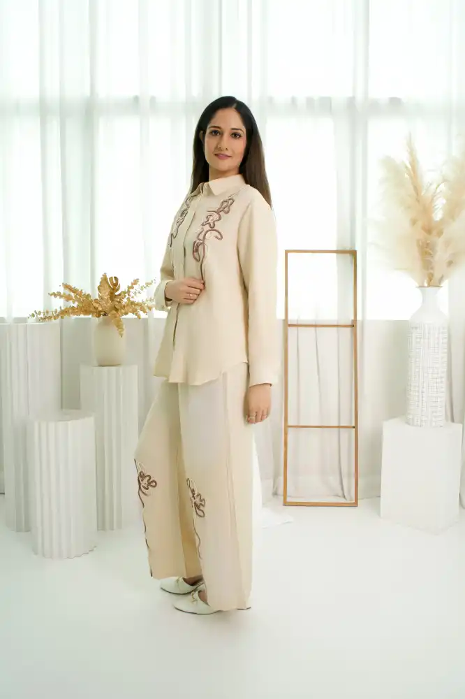 Step into effortless sophistication with our Urban collection, crafted from breathable linen-blend fabric that feels as light as air. Designed with graceful embroidery inspired by organic flow lines, this set brings together comfort and artistry in perfect harmony. Weather for brunch dates, festive gatherings or laid back days, this elegant neutral tone keeps you timelessly chic.