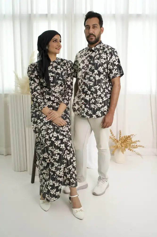 Celebrate this Raya in perfect harmony with the Anggun Couple collection 2026. Designed to bring out sophistication, comfort, and unity in every pair. Tailored from soft, breathable cotton, the men's peice complements the Ayuna Dress with matching floral, modern slim fit with clran line, it balance tradition and contemporary charm- making him look effortlessly sharp beside his partner.