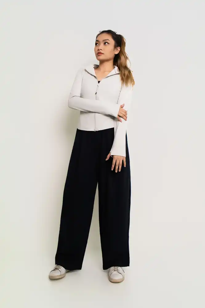 A sporty-chic touch wear it zipped up clean look or slightly open for a relaxed vibe. Perfect to pair with wide-leg pants, skirts or denim for that cool, minimalist aesthetic.